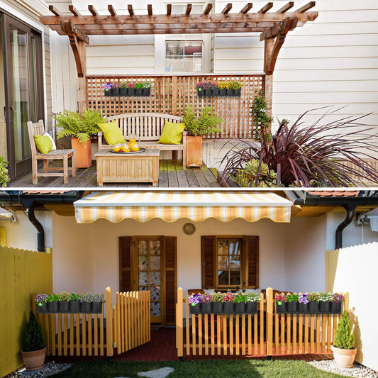 ANGTUO 6 Pockets Hanging Planters for Outdoor Plants, One Pack Wall Planter Vertical Garden, Hanging Plant Holder for Railing, Balcony, Fence