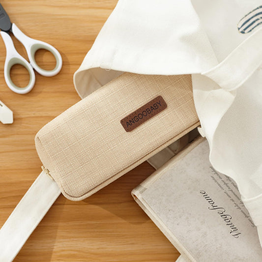 ANGOOBABY Small Pencil Case Student Pencil Pouch Coin Pouch Cosmetic Bag Office Stationery Organizer For Teen School-Beige