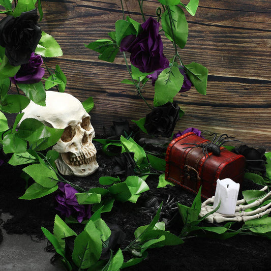 4 Pieces 7.7 Feet Fake Rose Vine Artificial Vine with Flowers Rose Garland Vintage Faux Flowers Decorations for Home Wedding Party Garden Hotel Office Decor (Black and Purple)