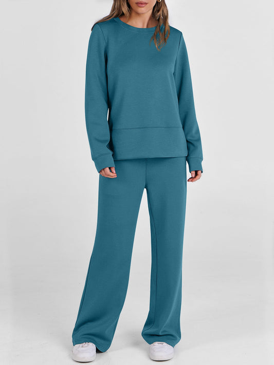 ANRABESS Women's 2 Piece Lounge Sets Casual Travel Outfits Wide Leg Tracksuit Sweatsuits Matching Set 2025 Fall Clothes Teal Medium
