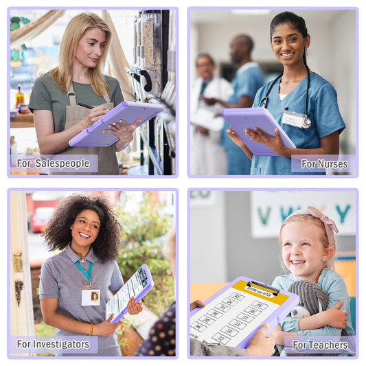 ANZNKU Storage Clipboard Heavy Duty, Clipboard with Storage 13x9.6 inches, Side Opening Plastic Clipboards, Nursing Clip Board Foldable, Letter Size Smooth Writing for Work, Study(Light Purple)