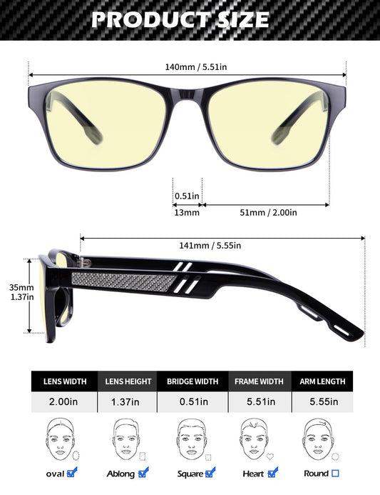 ANYLUV Mens Blue Light Glasses Lightweight Anti Blue Light Blocking Computer Gaming Glasses Eyes Protection with Carbon Fiber Decoration
