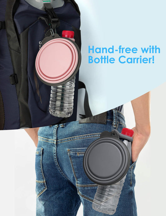 Aonkey Collapsible Dog Bowls with Bottle Carrier, 2 Pack Travel Dog Water Bowl Upgraded Carabiner, One-Piece Molded Rim No Fall Off or Crack, Foldable Silicone Portable for Pets Walking Hiking 15oz