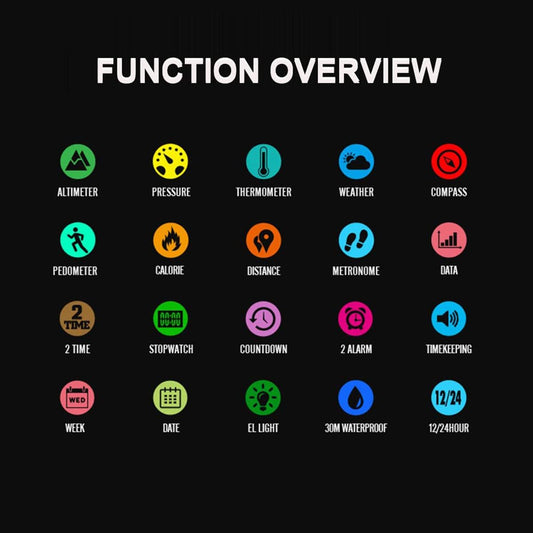 AOSLSI Watch Compass, Altimeter Barometer Thermometer Temperature, Pedometer Watch, Watch Compass, Altimeter Barometer Thermometer Temperature, Pedometer WArmy Waterproof Outdoors Sport Digital Watch for Men, Black