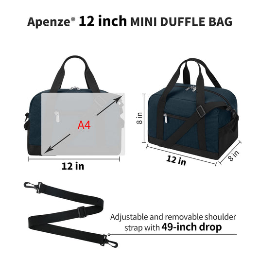 Apenze Small Gym Bag Carry On Bag - 12 in Mini Duffle Bag Lightweight for Overnight Travel(Navy Blue)