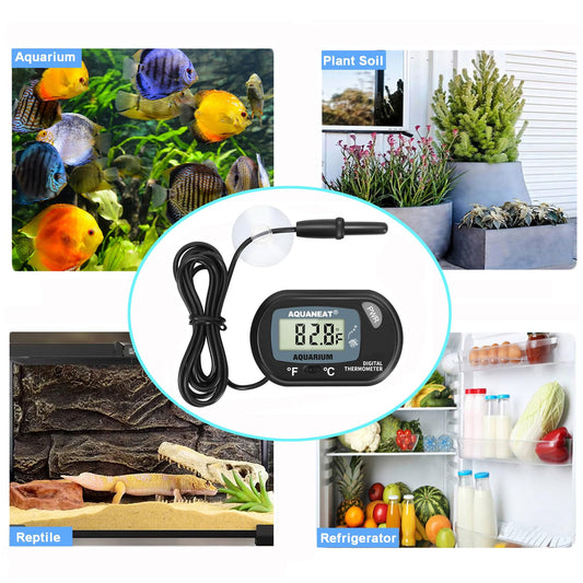 AQUANEAT Aquarium Thermometer, Fish Tank Thermometer, Digital Temperature Test, with Large LCD Display (1 Pack)