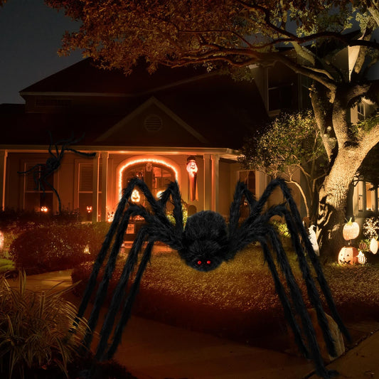 AREOK 10 FT Giant Spider Halloween Decorations Outdoor - Scary Halloween Large Big Huge Realistic Fake Hairy Plush Spider Props for Indoor Outside Yard Lawn Party Creepy Decor, Black