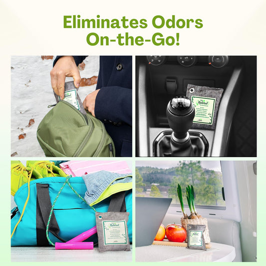 Asani Air Purifier Bags with Bamboo Activated Charcoal (Purifying Pack of 4) | Natural Air Freshener Deodorizer | Moisture Absorber and Odor Eliminators for Home, Car, Refrigerator, Closet (200g Each)