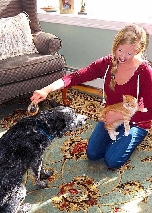 AtEase Accents Double Sided Dog Brush - for Long or Short Haired Dogs and Cats Natural Bamboo Eco Friendly Pet Grooming Dual Sided Pin and Bristles for Deshedding Hair