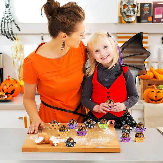 AUGSUN 800pcs Halloween Mini Cupcake Liners Paper Cups Ghost Pumpkin Spider Mini Muffin Liners for Halloween Party Candy Cupcake Decorations Supplies(8 Designs)