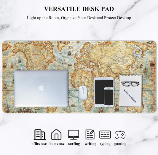 Auhoahsil Large Gaming Mouse Pad, Vintage Map Theme XXL 35.4 x 15.7 in Desk Pad Stitched Non-Slip Rubber Long Computer Mousepad Thin Extended Full Size Desk Mat for Desktop, Laptop, Wireless Mice