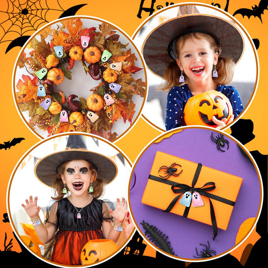Augshy 64 Pcs Halloween Ghost Charms, Resin Ghost Charms Luminous Ghost Beads Halloween Pendant Bulk Glow in The Dark Ornament for DIY Bracelet Necklace Earrings Jewelry Making Accessories Decorations