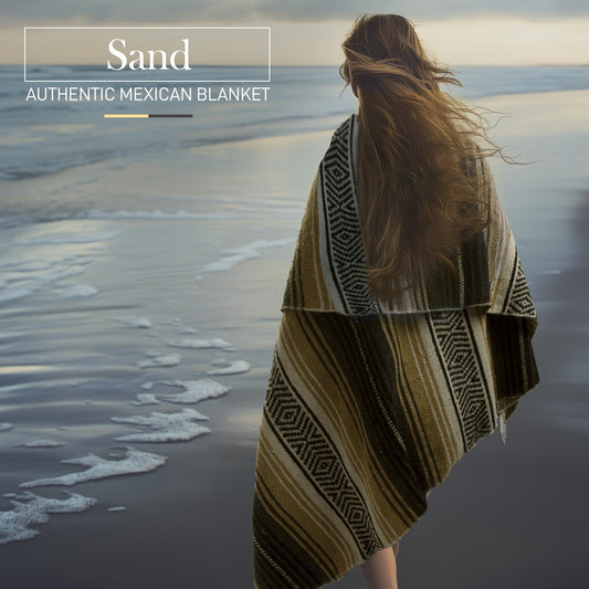 Authentic Large Handwoven Mexican Blanket - Soft Yoga Blankets - Durable Serape - Lightweight Falsa Blanket, Beach, Camping, Picnic, Equestrian Saddle, Outdoor Blankets 70"x50" - Sand