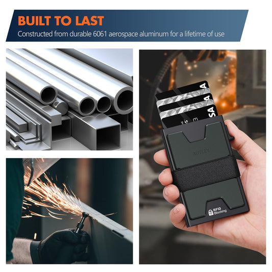 AUTLEY Slim Card Holder, Minimalist Pop Up Wallet for Men, RFID Blocking Mens Wallet with Cash Band (Black)