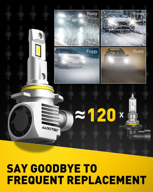 AUXITO 9012 HIR2 Bulbs, 30000LM High Bright 6000K Cool White, CanBus Ready Driving Light with 16000RPM Cooling Fan, Plug-N-Play Halogen Raplacement for 9012 HIR2 Fog Light, Pack of 2