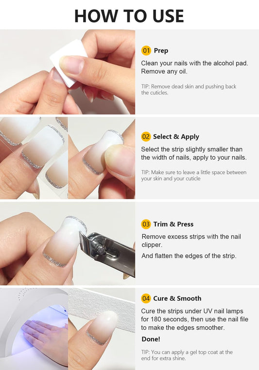 AutyaMee Semi Cured Gel Nail Strips (Laser Spider Web), Halloween, 20 Pcs Gel Nail Wraps, Stickers, UV Light Required, Salon Quality, Long Lasting