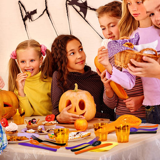 60 Pcs Black Purple and Orange Plastic Forks, Halloween Plastic Forks, Heavy Duty Disposable Plastic Cutlery Set for Halloween Party Decorations