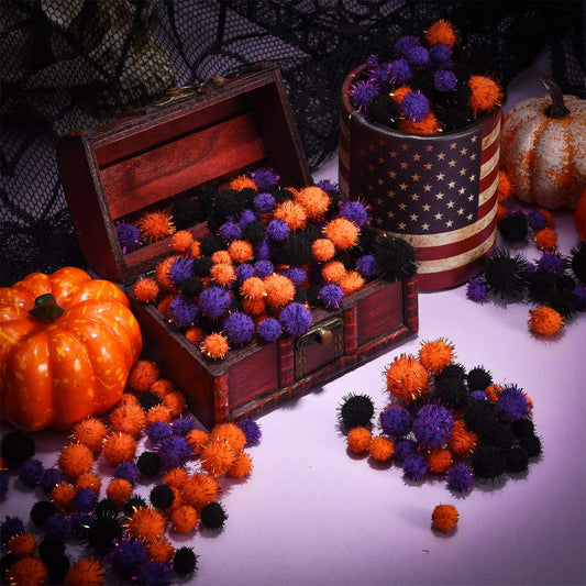 600 Piece Halloween Craft Pom Poms Mini Pompoms Fuzzy & Fluffy Balls for Party Decors (Black, Orange, Purple)