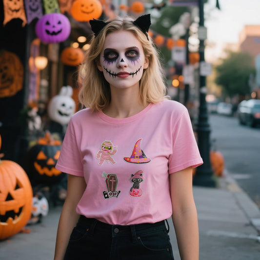 AXEN 16pcs Halloween Iron on Patches, Pink Halloween Patches Embroidered Applique for Girls Clothing, Hats, Backpacks, Jeans