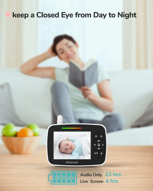 Baby Monitor - 3.5 inch Large Display Video Baby Monitor with Camera and Audio,Remote Pan/Tilt/Zoom, 1200 mAh Battery, Night Vision, Two Way Talk, Smart Temperature,Lullabies,960ft Long Range