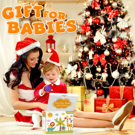 Baby Toys 6 to 12 Months, 5 In 1 Montessori Toys for 1 Year Old, Incl Travel Pull String Toy & Rattle Teether & Stacking Baby Block & Soft Infant Ring & Sensory Ball for Toddler 0-3-6-9-12 Month