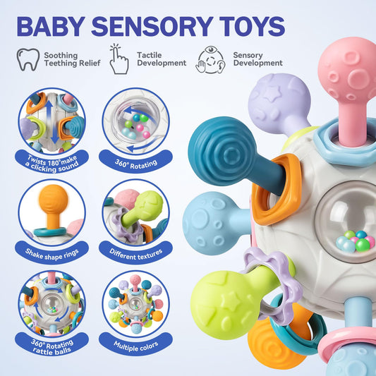 Baby Toys 6-12 Months,5 in 1 Montessori Toys for Babies 6-12 Months,Pull String Infant Teething Toys,Stacking Rings,Color Shape Sensory,Suction Cup Spinner Toys for 6-9-12 to 18 M+ Birthday Gifts