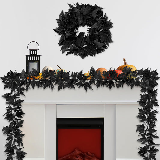11.8FT Halloween Garland, 2 Pack Black Maple Leaf Garland, Realistic Halloween Hanging Fall Leaves Vines, Artificial Decorations Leaves Garlands Decor Outdoor Indoor Mantel Stair Decor