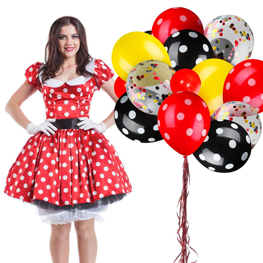 75 Pieces Mouse Color Balloons Confetti Polka Dot Balloons Latex Party Garland for Halloween Baby Shower Wedding Mouse Birthday Party Decorations Supplies(Red-Black-Yellow)