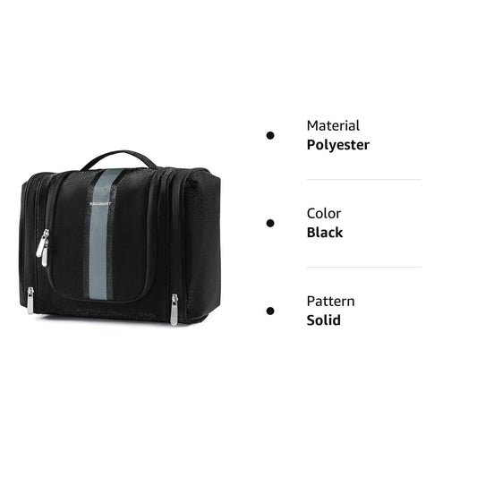BAGSMART Extra Large Toiletry Bag Hanging Toiletry Bag for Travel, Water-resistant Cosmetic Makeup Travel Bag, Capacity Travel Bag Organizer for Full-size Toiletries, Black-Large