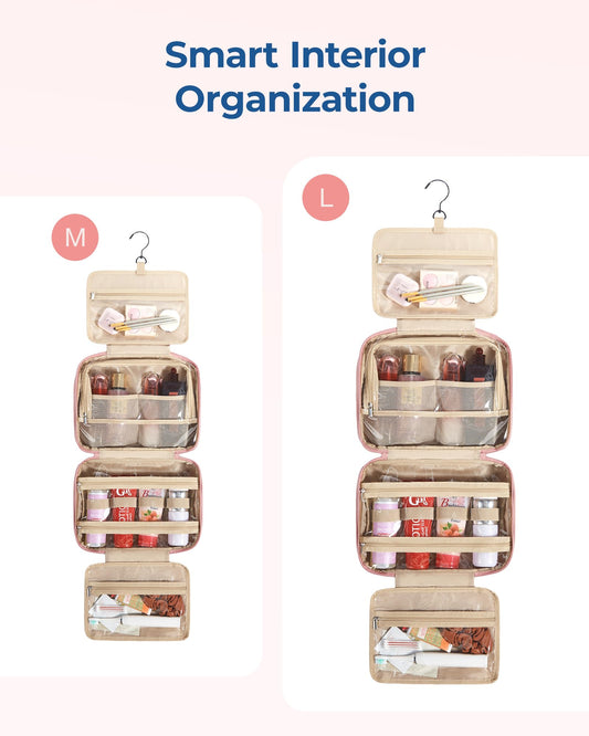 BAGSMART HangingToiletry Bag for Women, Puffy Travel Toiletry Bag with Jewelry Organizer, Waterproof Cosmetic Makeup Bag Compartment, Toiletries Kit Set for Traveling, Accessories, Essentials (Large)