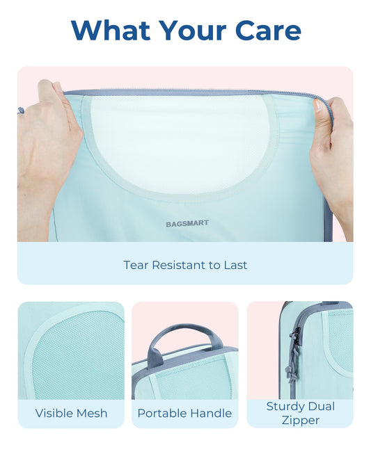 BAGSMART Compression Packing Cubes, 6 Set Packing Cubes for Suitcases, Lightweight Suitcases Organizers Bag Set & Compression Travel Cubes, Travel Essentials Packing Organizers Sky Blue