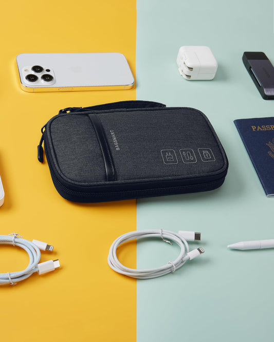 BAGSMART Cord Organizer Travel Cable Organizer Bag Tech Electronic Organizer Travel Case, Travel Essentials for Charger, Cable, Phone, Flash drive, Single Layer - Black