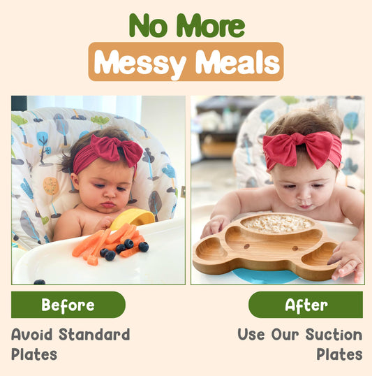 Bamboo Plates for Kids - Baby & Toddler Plates with Suction for Feeding & Weaning, Eco-Friendly Bear Design Promotes Self-Feeding, Ideal for Busy Moms & Dads, Sturdy & BPA-Free (Blue)