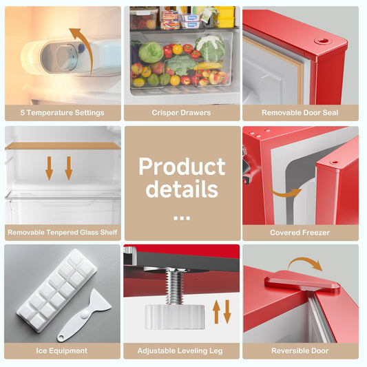 BANGSON Mini Fridge with Freezer, 3.2 CU.FT Small Refrigerator with Freezer, Door Handle, Bottle Opener, For Bedroom, Dorm, Office, Home, Garage or RV, R-600a (Red)