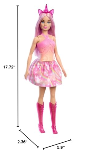 Barbie Unicorn Doll with Pink Fantasy Hair, Colorful Pink and Orange Outfit, and Unicorn-Themed Fantasy Accessories