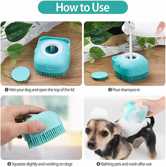 Bath Brush Scrubber Soft Silicone Pet Shower Grooming Shampoo Massage Dispenser For Short Long Haired Dogs And Cats (Blue+Pink)