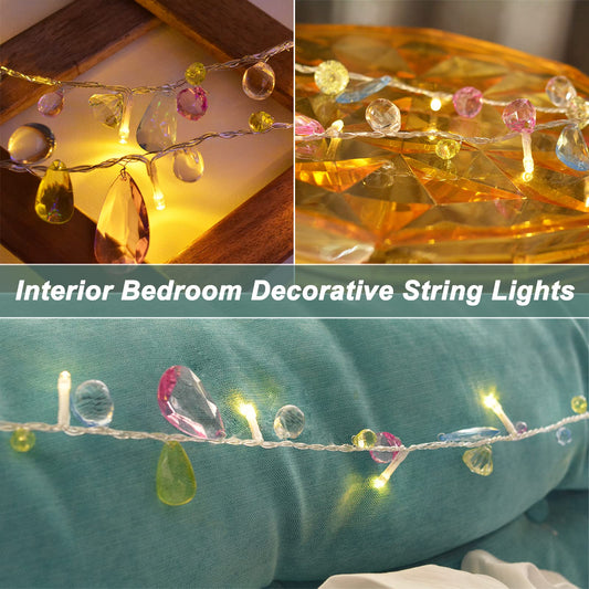 Battery Operated Fairy String Lights, Acrylic Gems Jewels String Lights with Remote 8 Modes Timer Function,30 Warm White LED Battery Powered Fairy Lights for Bedroom Party Decor