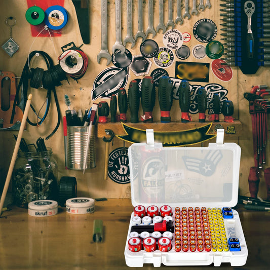 Battery Organizer Storage Box, Garage Case Holder for 24* AA, 30* AAA Batteries (Bag Not Include Batteries Pack) (white)