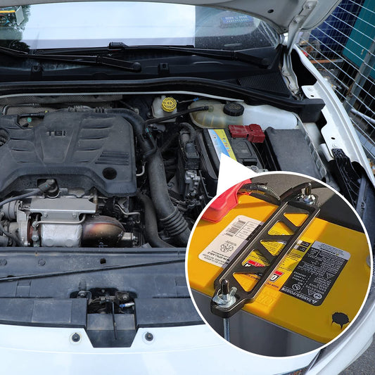 Battery Hold Down Bracket, Aluminum Alloy Battery Tie Down Bracket, Battery Tray for Car Battery Mount Bracket Hold Lock Accessories, Car Battery Lock Down- with 10inches J Bolts (Black)