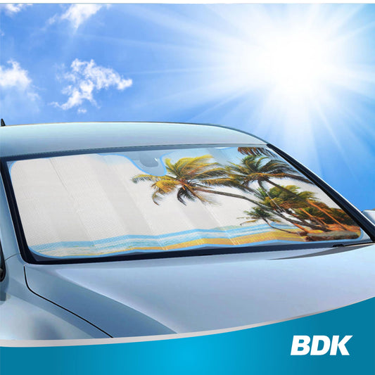 BDK Palm Tree Tropical Island Front Windshield Sun Shade Accordion Folding Cute Car Window Shades for Truck & Car Sunshade Shield for Sun UV Rays - Visor Protector Keeps Vehicle Cool - 58 x 27 inches