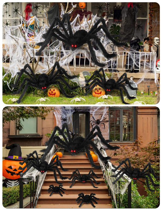 Acina Halloween Giant Spider Decorations, 6 Pcs Realistic Hairy Spiders (6 Different Sizes) Set for Indoor, Outside Yard & House Garden Lawn Creepy Decor