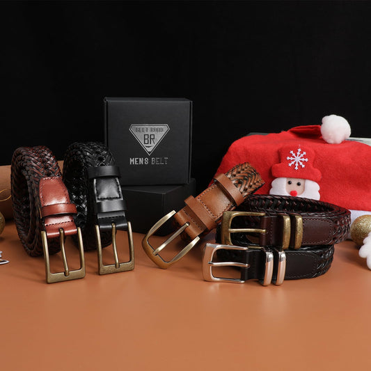 BELTROAD Mens Braided Leather Belt Woven Leather Belts Birthday Christmas Gifts for Men Brown Hand Braided Belt for Wasit 32"-38"