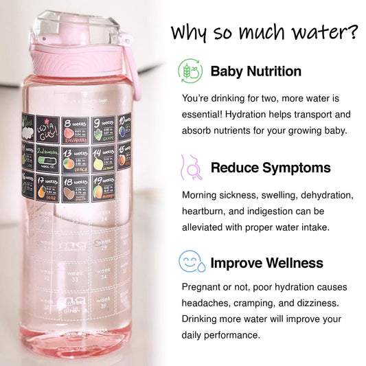 BellyBottle Pregnancy Water Bottle Tracker – Pregnancy Must Haves – Pregnancy Gifts for Expecting Mom – Pregnancy Essentials Nausea Relief – Weekly Stickers + Straw + BPA Free + Pink