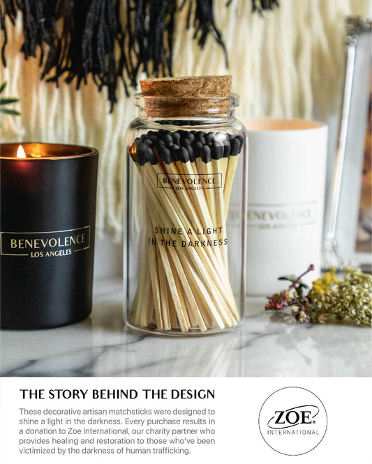 Benevolence LA Decorative Wooden Matches in Glass Jar with Striker | 4 Inches Colored Safety Long Match for Lighting Candles | Apothecary Home & Bathroom Decor - Midnight Black