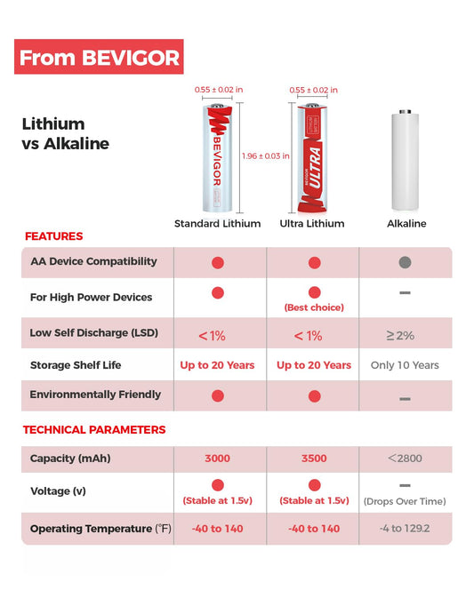 BEVIGOR Lithium AA Batteries 24 Pack, Long Lasting 1.5V AA Battery, 20-Year Shelf Life Lithium Batteries for Blink Camera, Flashlight, Microphone, Alarm System【Non-Rechargeable】