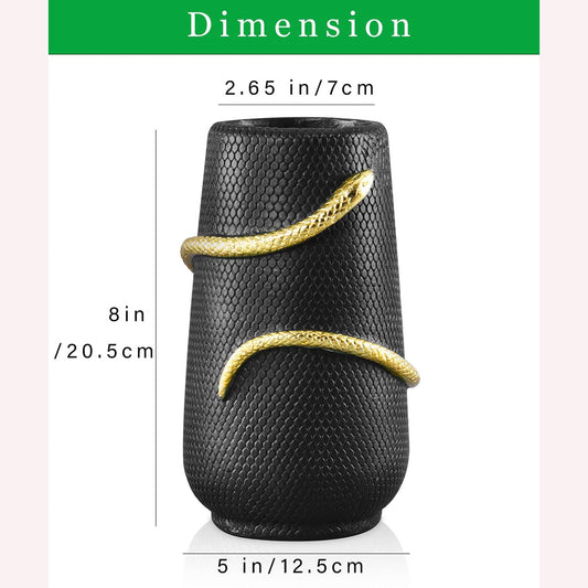 Black Flower Vase Home Decor, Halloween Decor Indoor, Unique Black Vase for Bookshelf Fireplace Bedroom Kitchen Living Room Table Centerpieces Office Desk,Boho Vase, 8" Tall