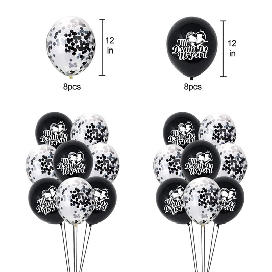 Black Glitter Till Death Do Us Part Banner Black Glitter Heart-Shaped Garland Cake Topper Latex Balloons Halloween Wedding Party Decorations Halloween Bachelorette Bridal Shower Decorations Halloween Engagement Party Supplies