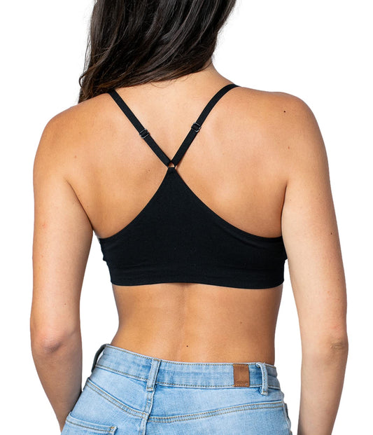 Blue 55 Women's Racerback Bralette Sexy Everyday Basic Deep V-Neck Wireless W/Removable Padding Bra (S/M, Black)