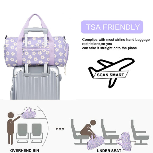 BLUBOON Duffle Bag Girls Kids Cute Gym Bag with Shoes Compartment & Wet Separation Waterproof Sports Overnight Travel Bag