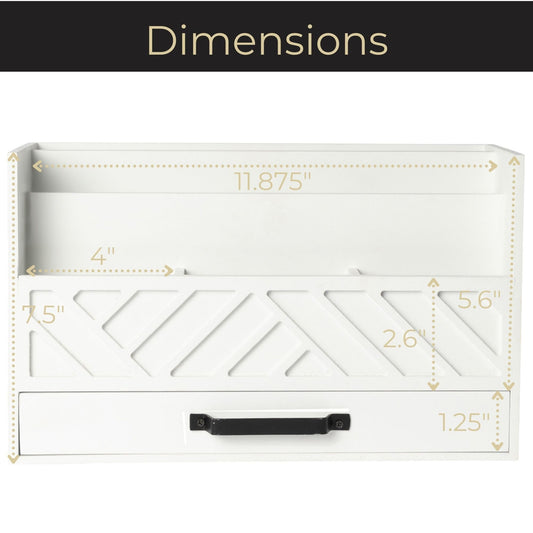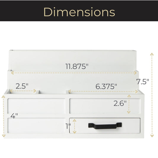 BLU MONACO Mail Organizer Countertop Kitchen – White Wood Desk Storage with Drawer – Mail Sorter or Bill Holder for Desk – Farmhouse Accessories & Mail Basket for Counter
